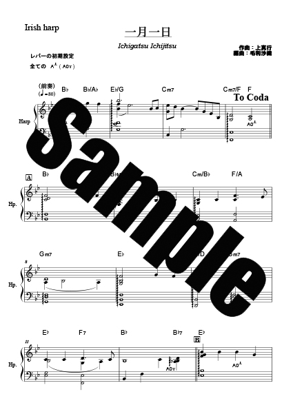 もし、より弾き易い楽譜をお探しの場合は、お持ちの楽器が大きな楽器であっても、「小型ハープソロ」又は、「小型ハープソロEasy」をお勧め致します。